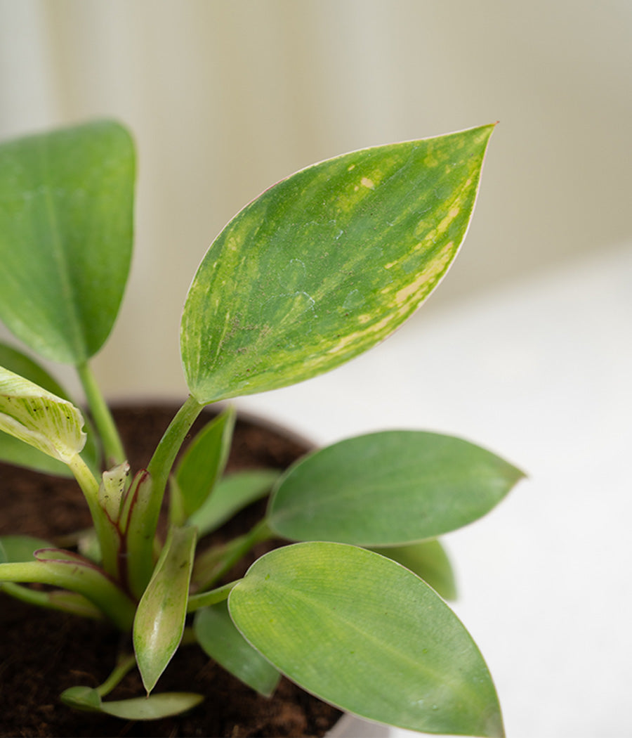 - A fresh new variegated variety of Philodendron, the Birkin has green leaves striped with creamy-white lines.