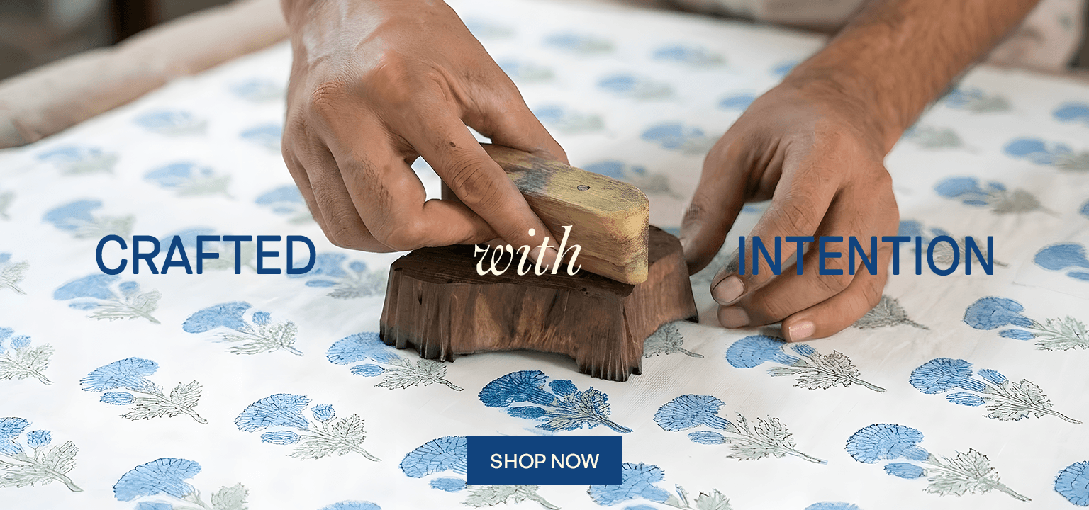 Our StorySustainableJoy in the Everyday · Soft Fabrics · Ethical India · Handblock Prints · Artisan-Made ·